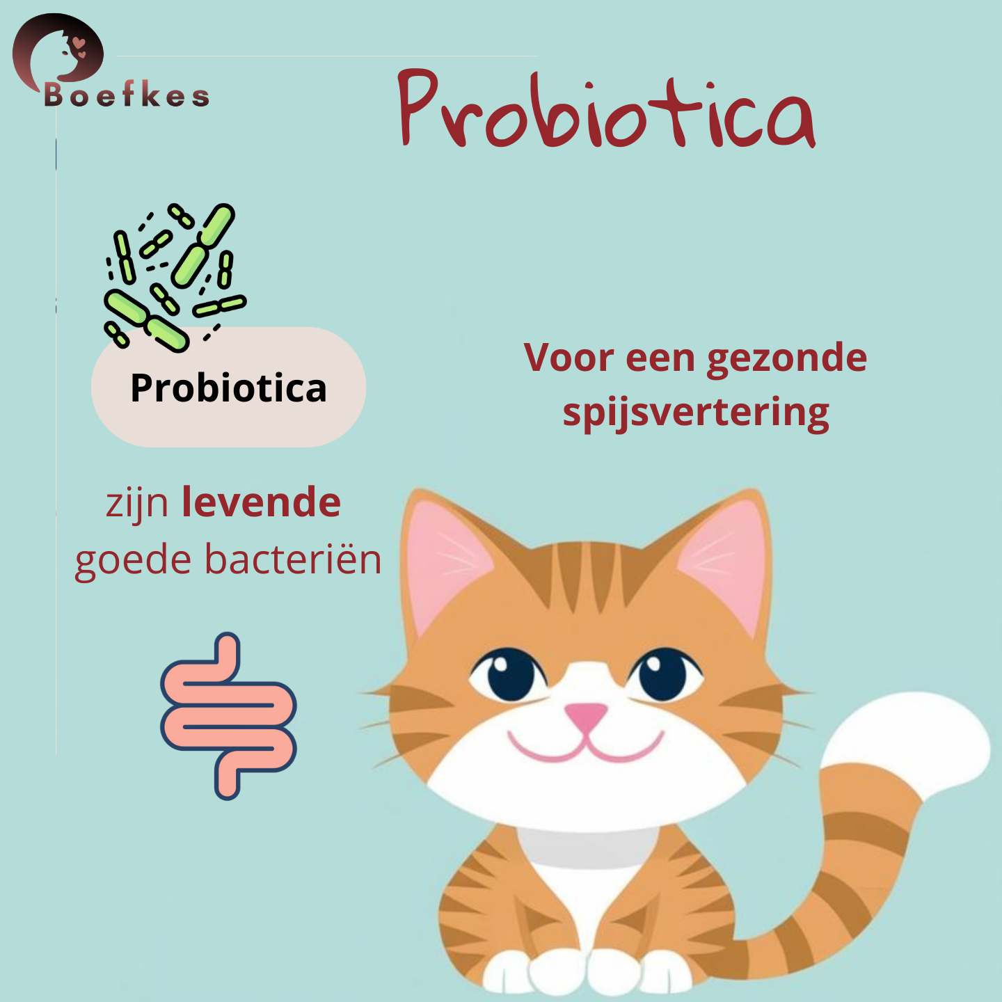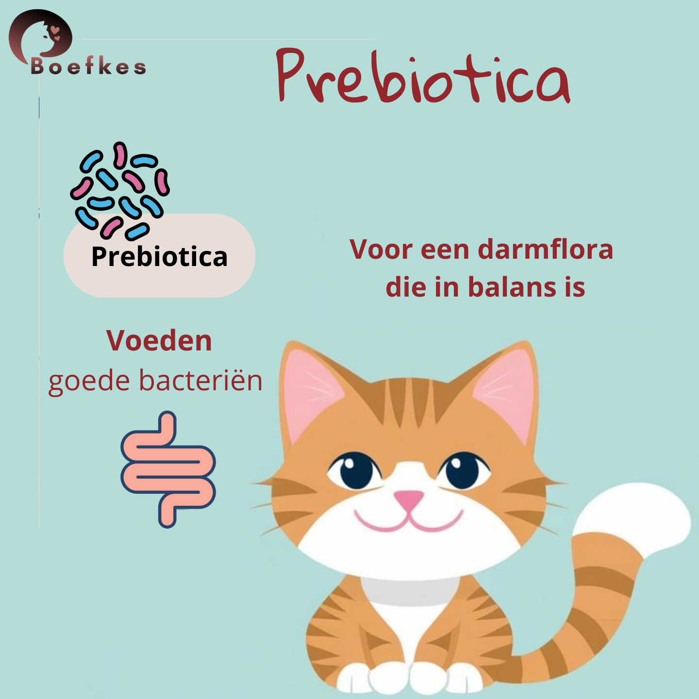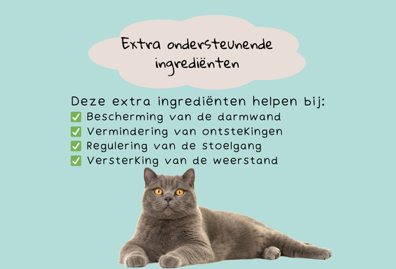 Deze extra voedingsstoffen helpen de spijsvertering, bevorderen een sterke darmbarrière en dragen bij aan het algehele welzijn van je kat.