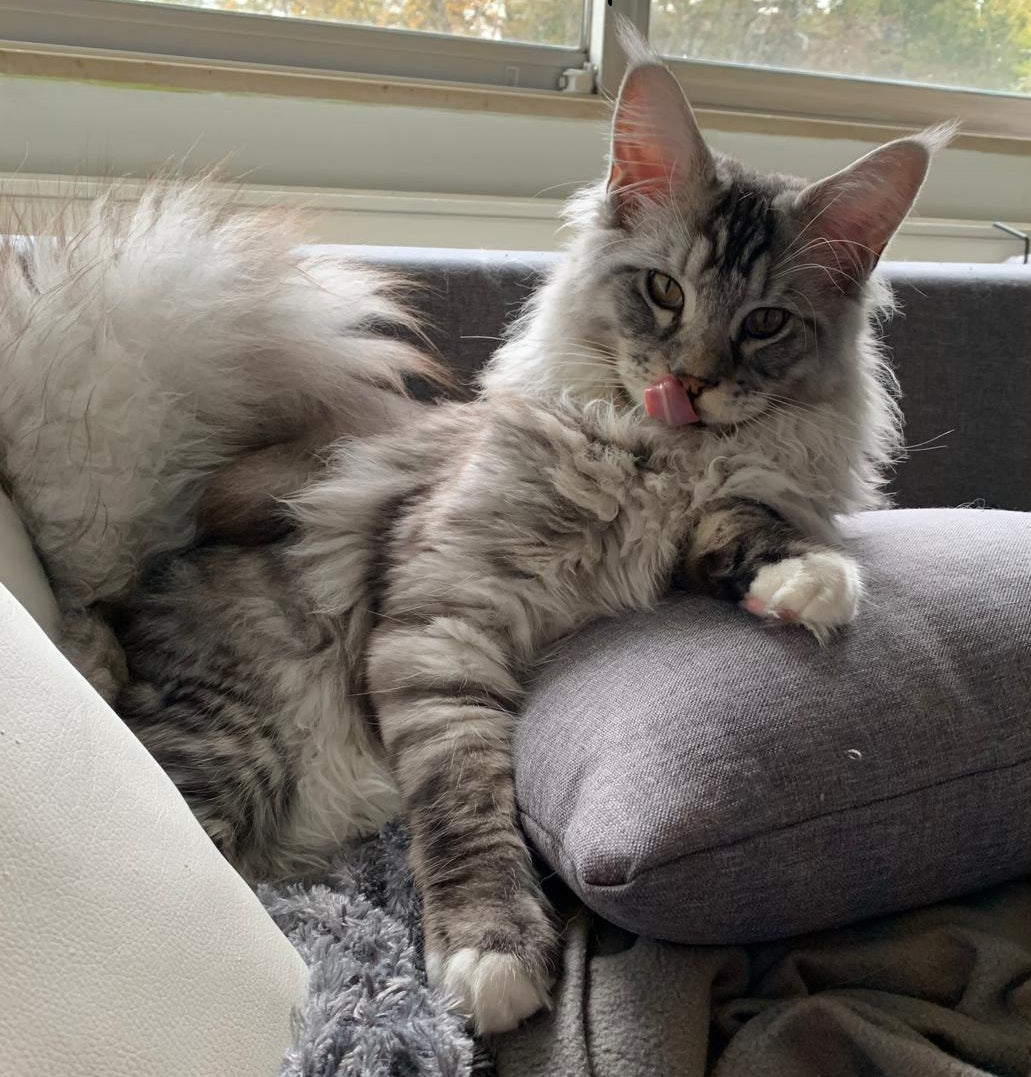 Ik speel heel graag met mijn vishengel. Dan komen ook echt mijn klauwen tevoorschijn!